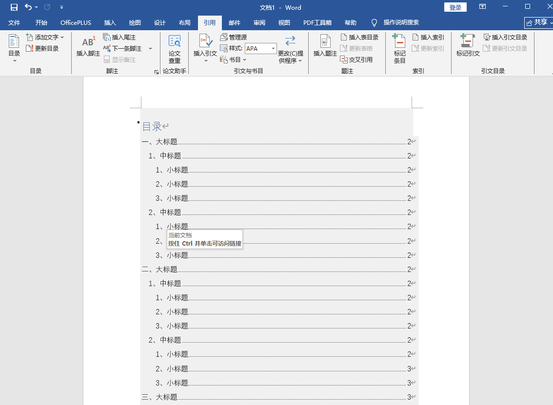 Office 2019怎么在生成目录