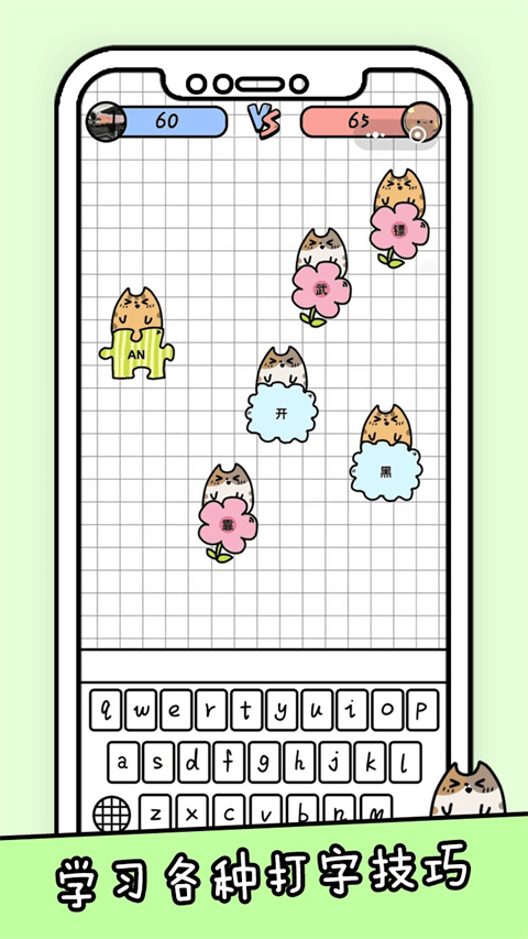 你会打字吗游戏结合了打字操作和经典的消除合成玩法,让你在打字的过程中也享受到游戏的乐趣,加上卡通的画风界面,还搭配了休闲的背景音乐,你可以随时的开始玩,非常的解压放松。你需要将屏幕当中出现的字母和汉字方块用打字的方式将他们打出来,练习到各种各样的打字技巧,逐渐掌握一种最适合自己的打字方式,通过游戏的形式将会更加加强自己的打字速度,感兴趣的朋友欢迎下载体验吧。