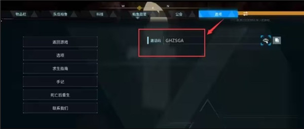 进入游戏后按ESC弹出菜单,点击上面的选项,将邀请码复制给好友。