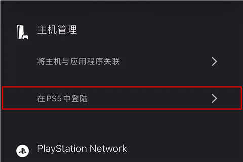 1、在PlayStation App上,在【设置】中点击 【在PS5中登录】。
