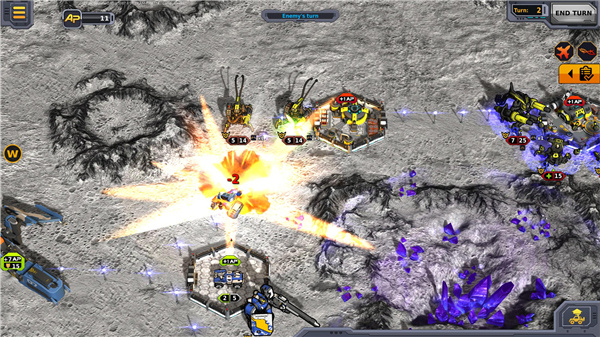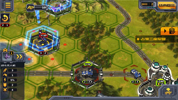 3、战斗模式采用战棋回合制,战场由无数个六角格组成,只有合理的利用地形以及单位之间的搭配才能胜利。随着科技的提升,你一共可以解锁将近25种单位,这带给你的组合搭配数量是无法想象的。