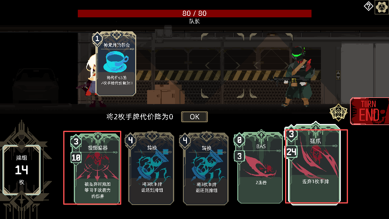 4、我们需要使用选择两张卡牌,将其代价变为0。