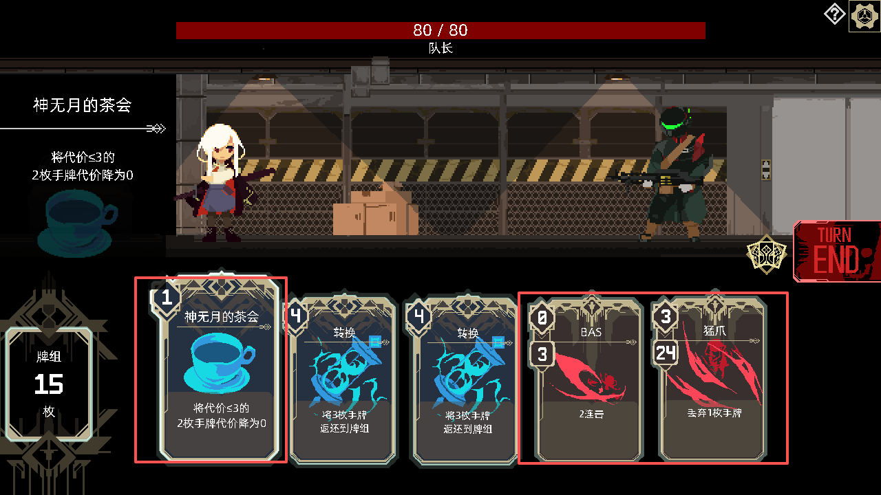 3、玩家需要消耗代价使用卡牌,就是屏幕左下角的“牌组15枚”,开局拥有“15代价”,玩家需要谨慎使用,而“神无月的茶会”是一张神卡,可以帮助你最多通过消耗1代价替换6代价。
