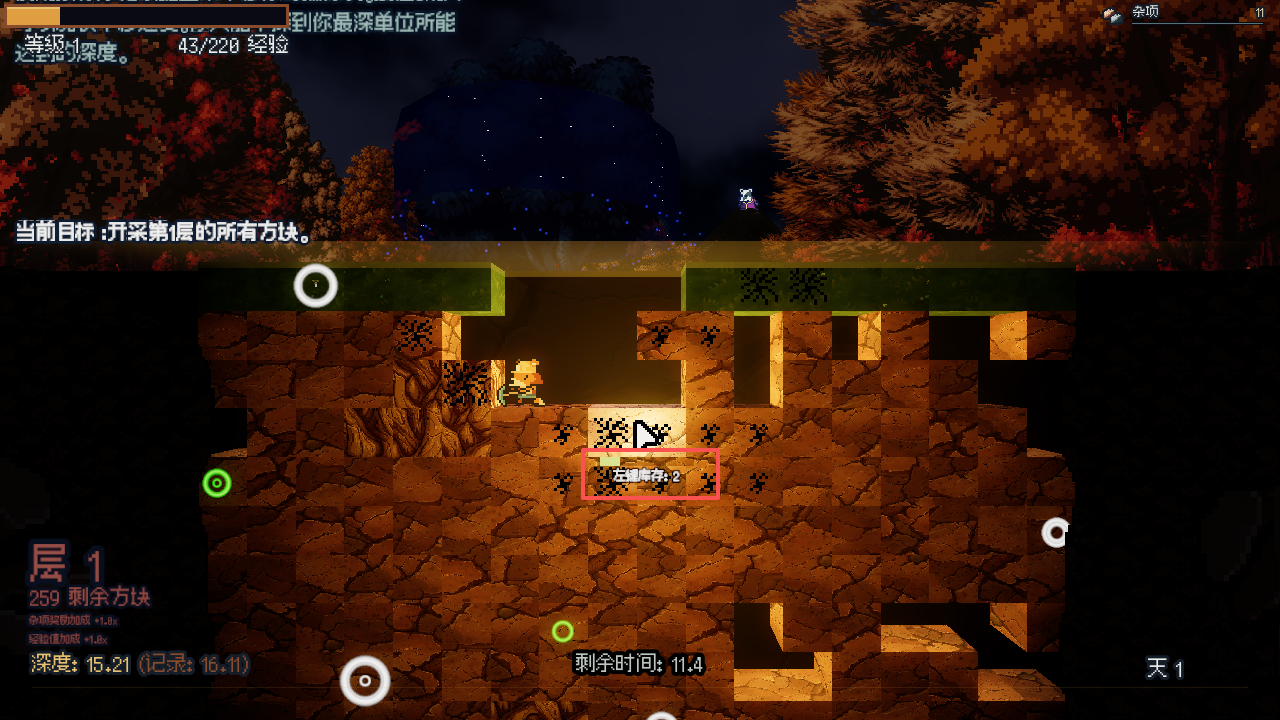 2、动物的挖掘是随机的,但后续用的动物会有逻辑的挖掘,玩家也可以捅咕点击鼠标左键来进行挖掘,可以自由挖掘,但次数有限,需要时间恢复。