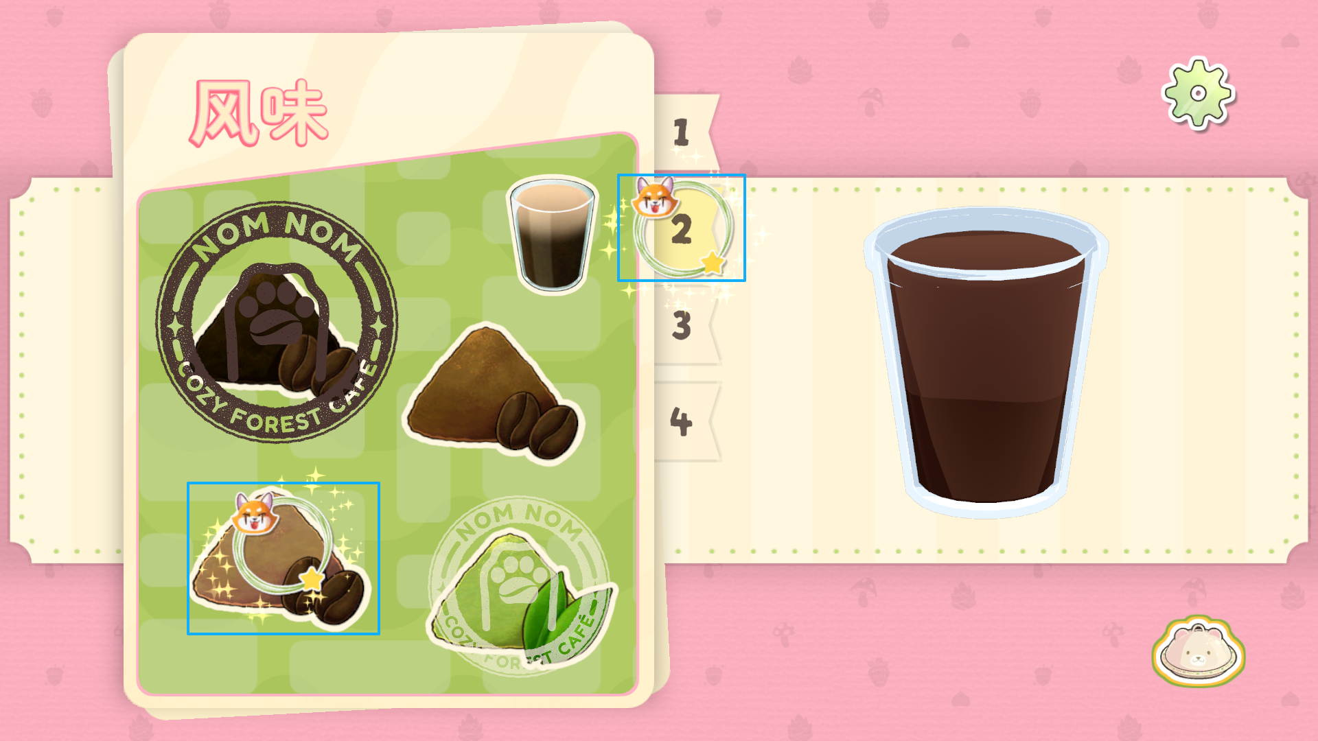 3、你可以根据容器,风味,附加品,糖饰来自定义这杯咖啡,但需要注意,每个小动物都有自己的喜爱,会有特殊标记,当你符合了他的喜好,就可以获得相应的小费。