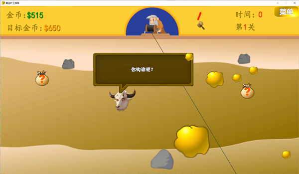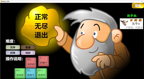黄金矿工指导版电脑版是由《植物大战僵尸指导版》作者“头牛o”制作的一款闯关挖矿休闲游戏,在童年经典游戏《黄金矿工》的基础上进行二传制作。本作保留挖矿闯关的核心玩法,加入牛头AI指导者,它将在玩家挖矿的过程中提供实时的干扰教学,它可能会随机减少金块,让金块隐身,有时还会故意触碰炸药,炸毁旁边的金块。