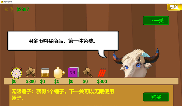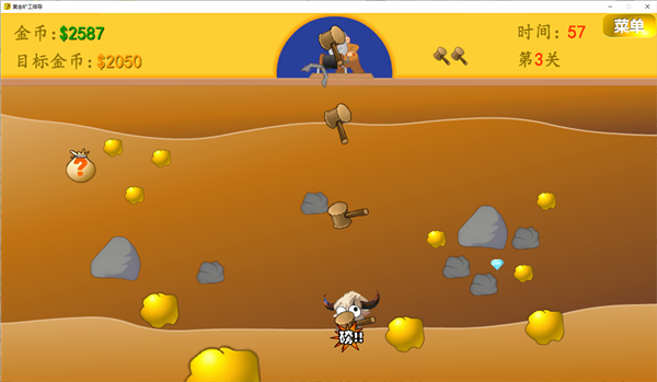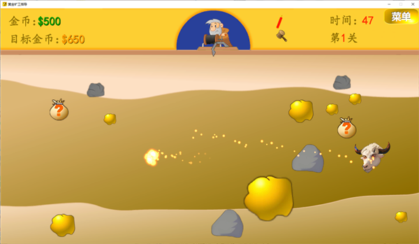 黄金矿工指导版PC版拥有简单、普通、困难、四个四个难度级别,其中每关都设有通关金额,玩家需要在牛头指导者的干扰下成功达到目标。玩家可在每关结束后购买各种道具帮助过关,用敏捷水增加下一关的出钩速度,或在牛头人捣乱的时候向它疯狂丢锤子泄愤,欢迎感兴趣的用户前来本站免费下载安装。