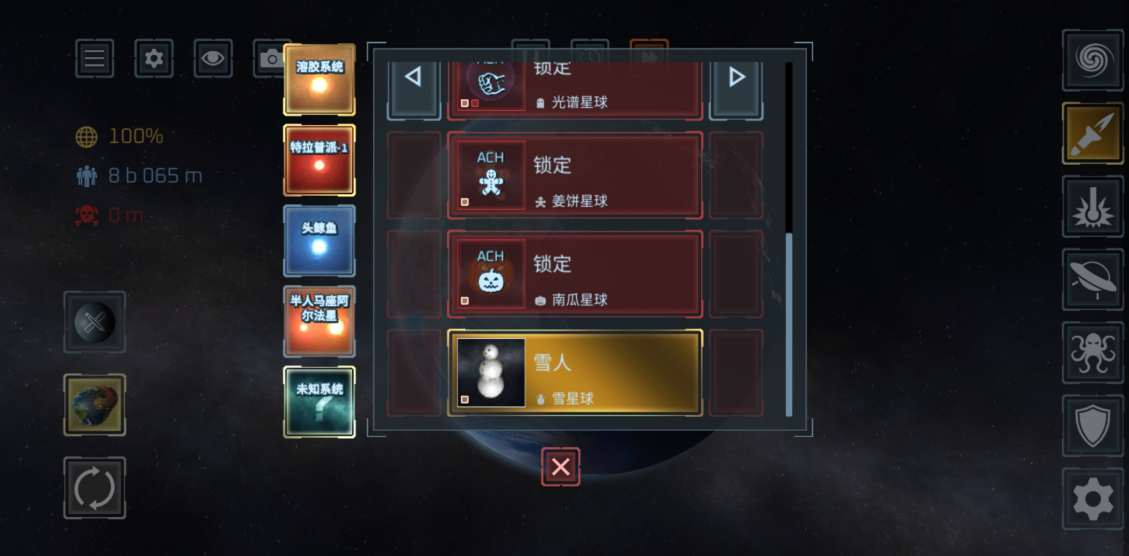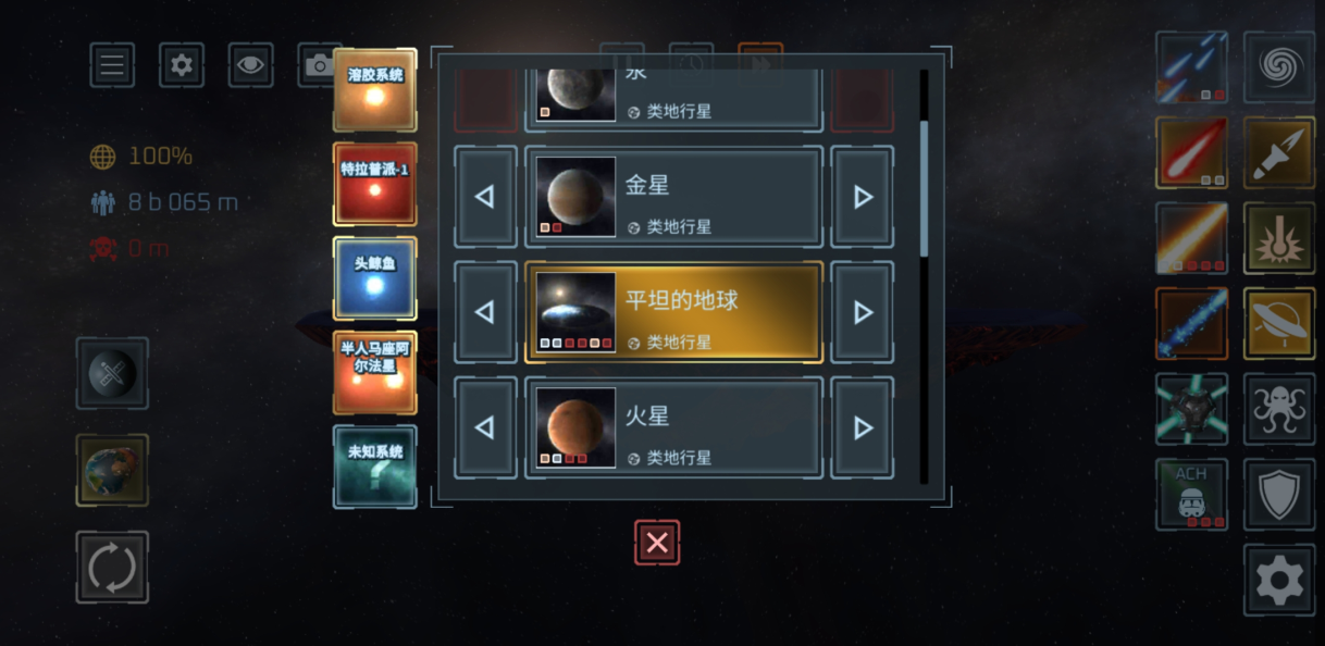4、各种不同的星体由你选择开启冒险之旅。