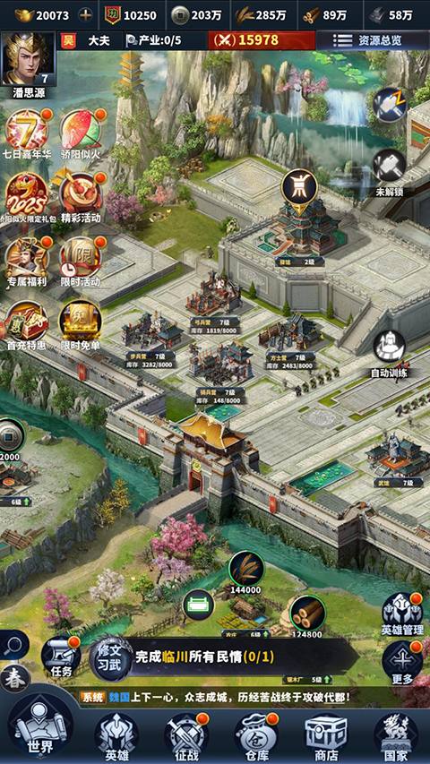 全服玩家同时参与并且攻打本游戏最大的城池(襄阳),最终在襄阳主城活下来的国家便是下一次襄阳战开启时的霸主,获得霸主奖励。