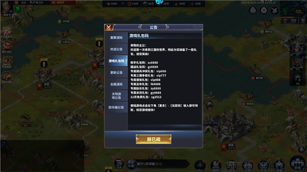2、点击公告选择游戏礼包码就可以看见最新的兑换码;