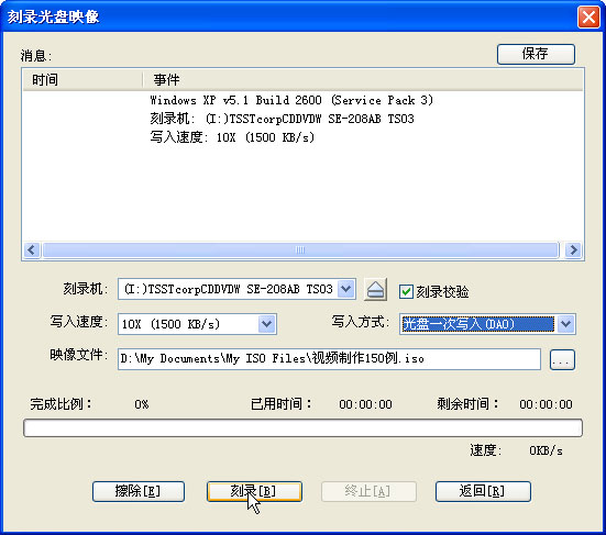 确定基本条件之后,进入刻录步骤: