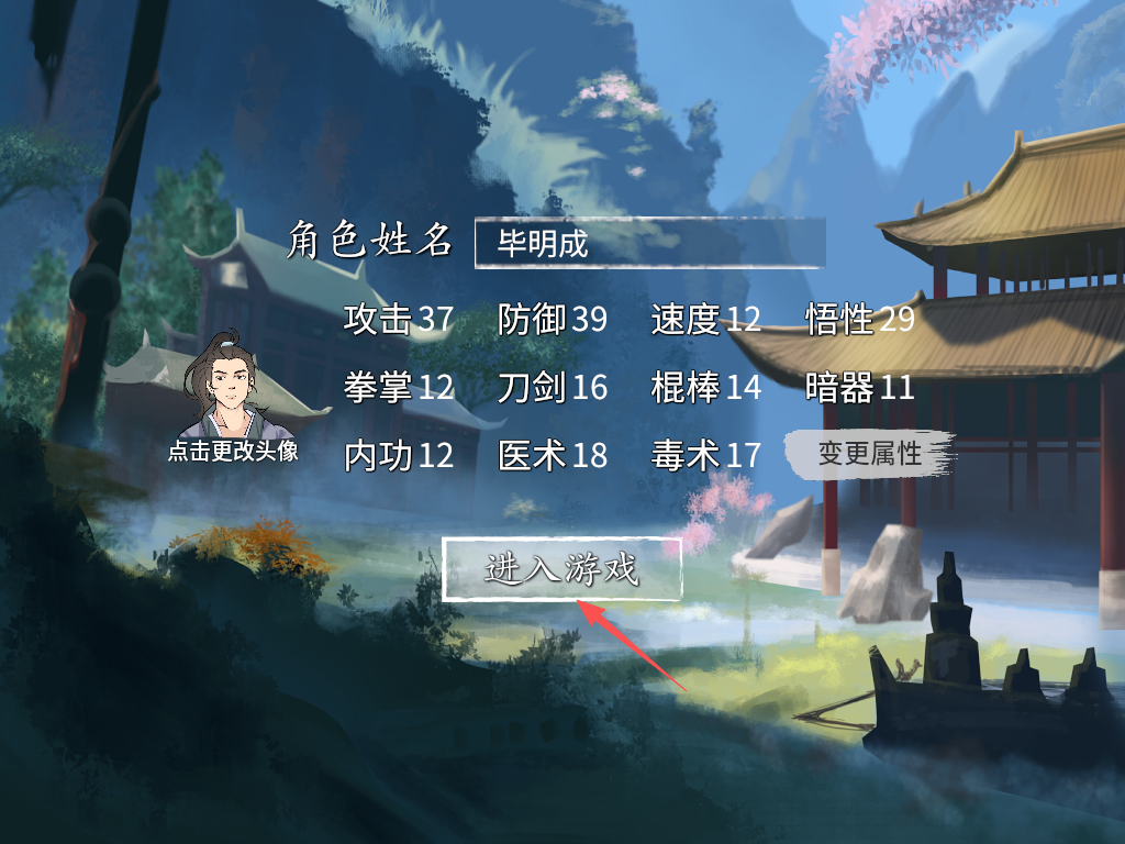 1、游戏开始,玩家可以设置角色的名称,头像以及随机自己的基础属性,完成后点击屏幕下方的“进入游戏”。