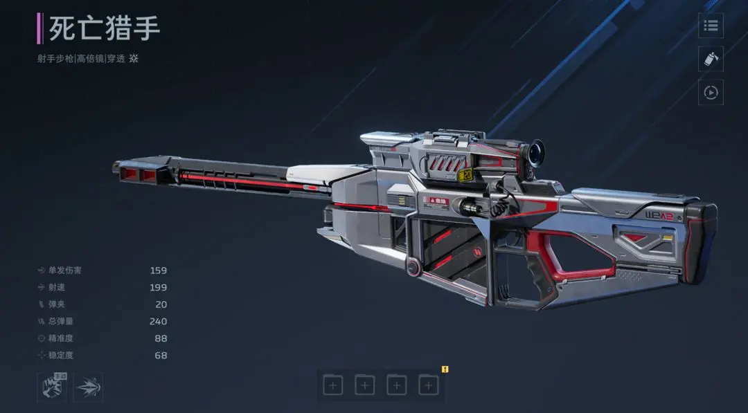 以死神猎手为例,单发伤害198,虽然低于裁决之眼和密林杀机等枪械,但死神猎手的射速与精准度数据表现优秀,加上穿透效果,死神猎手属于PVE模式T0系列。