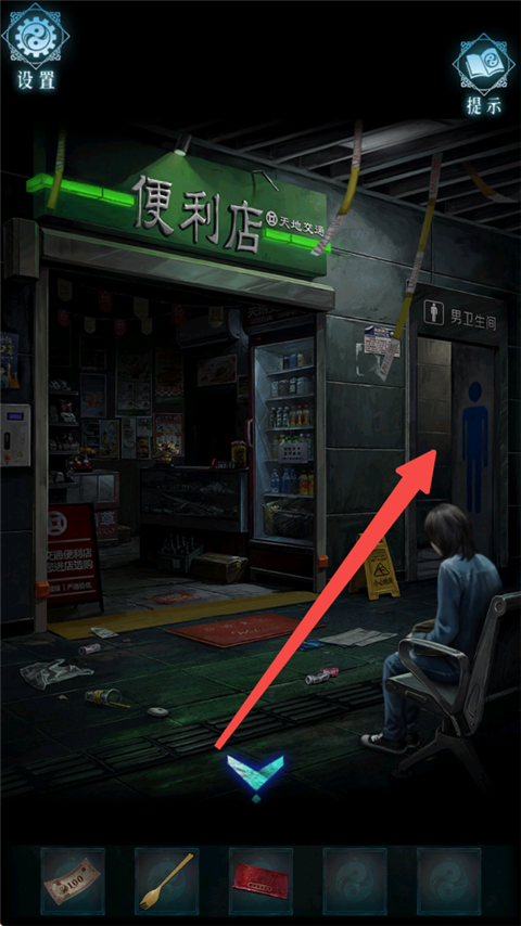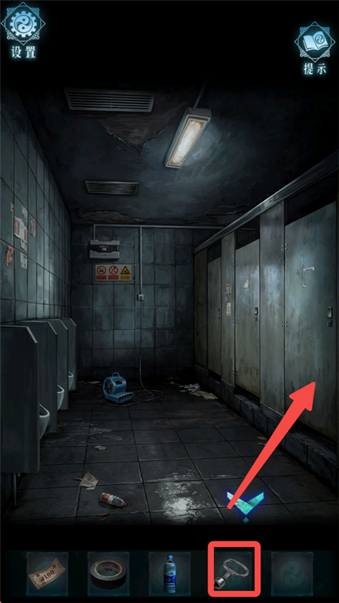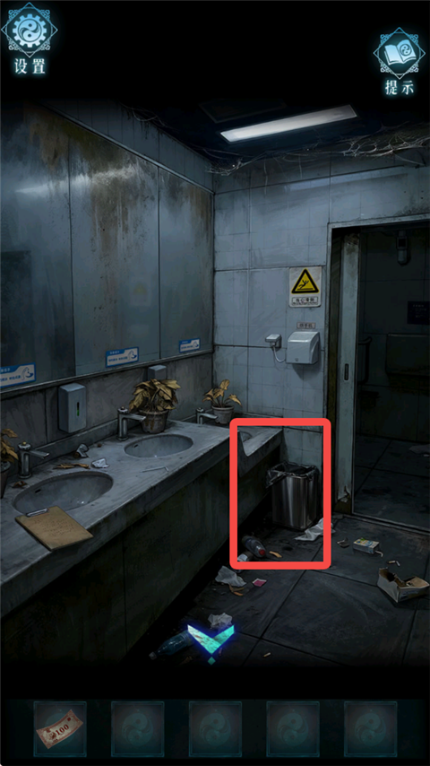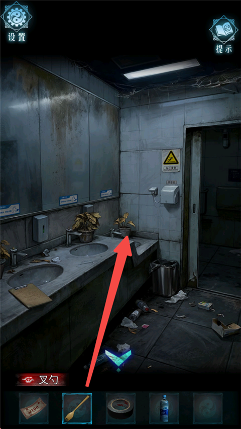 2、进入卫生间,在垃圾桶中得到卡片与叉子。