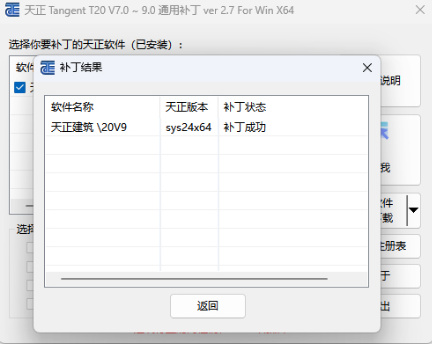 6、显示补丁成功后点击返回,现在就激活程序免费使用了。
