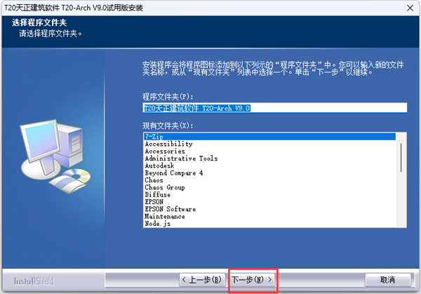 3、默认程序文件夹点击“下一步”;