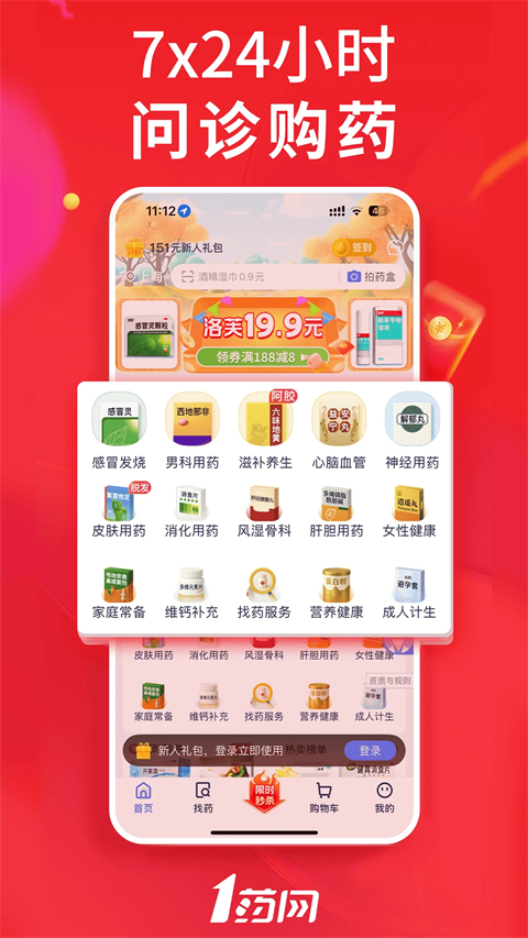 涵盖中药、西药、成人用品、本草纲目、维生素钙、滋补保健、隐形眼镜等。