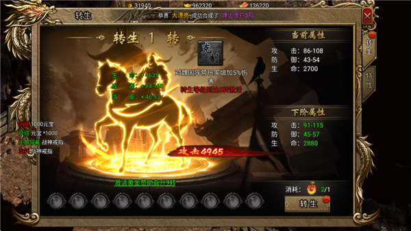 4、想要提升战斗力,就需要消耗资源提升转生、装备强化等途径;