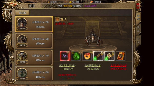 3、大量BOSS刷新后可挑战,获取专属的资源;