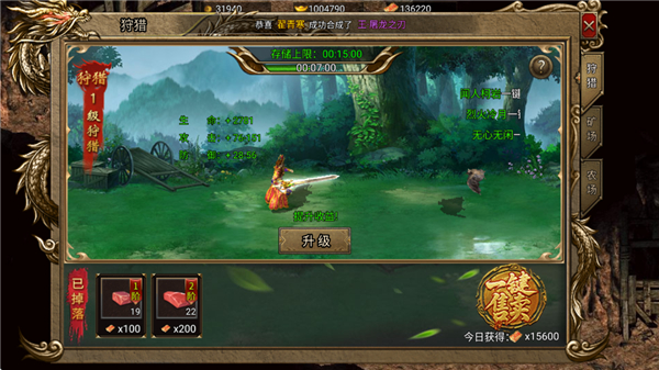 狩猎场、矿场、农场全面开放,分别产出灵符、传奇币、元宝,多线资源获取,养成节奏稳定不枯燥!