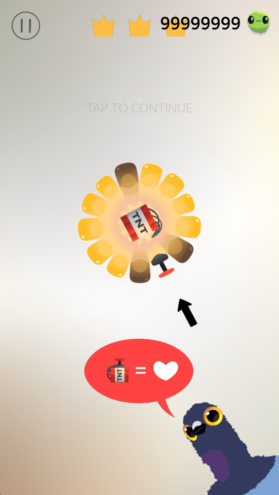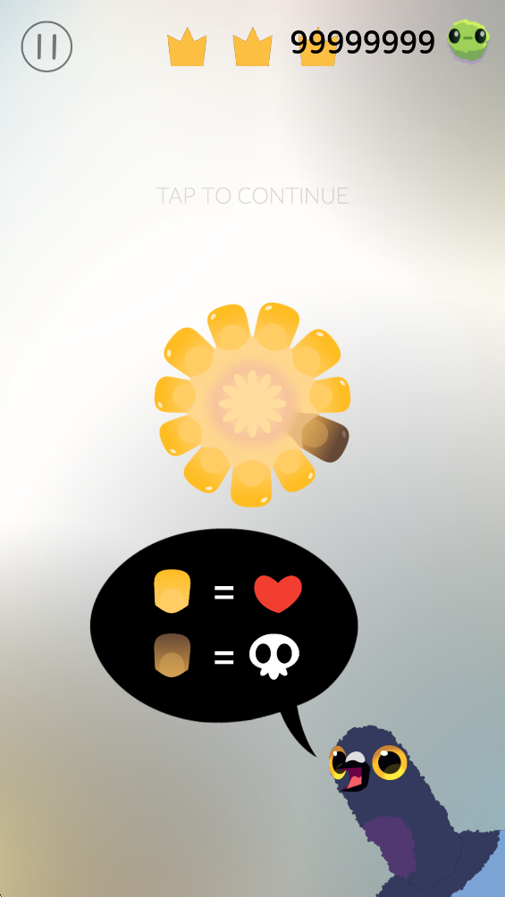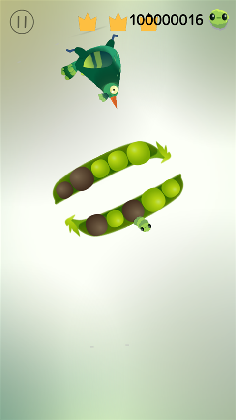 3、点击屏幕可以让鸽子开始吃玉米粒,注意上方的时间。皇冠为时间流逝,争取在结束的时候获得三个皇冠。
