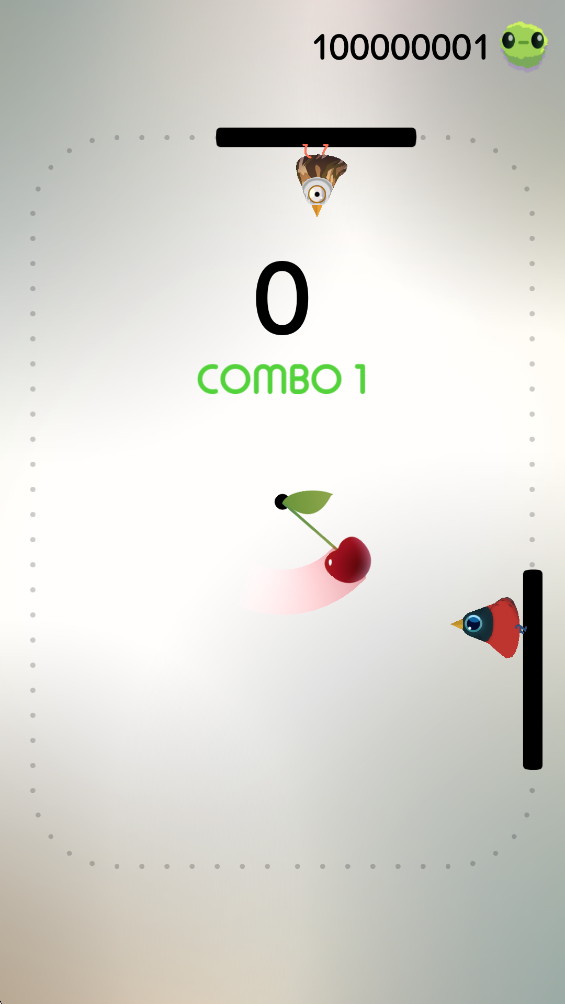 2、当樱桃转到小鸟的位置就点击,小鸟就会吃到樱桃,就是在适当时机成功投喂小鸟。会给你算连击数,连击数越高越好。