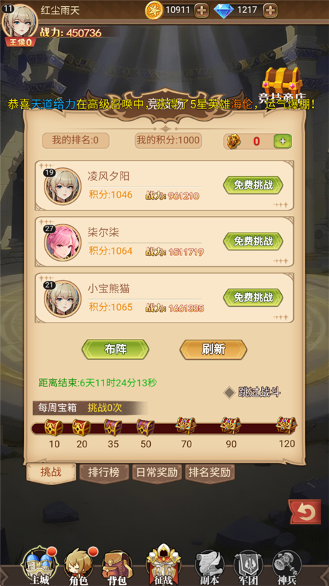 3、每日在竞技场给排行榜中的玩家点赞也可获得金币哦。