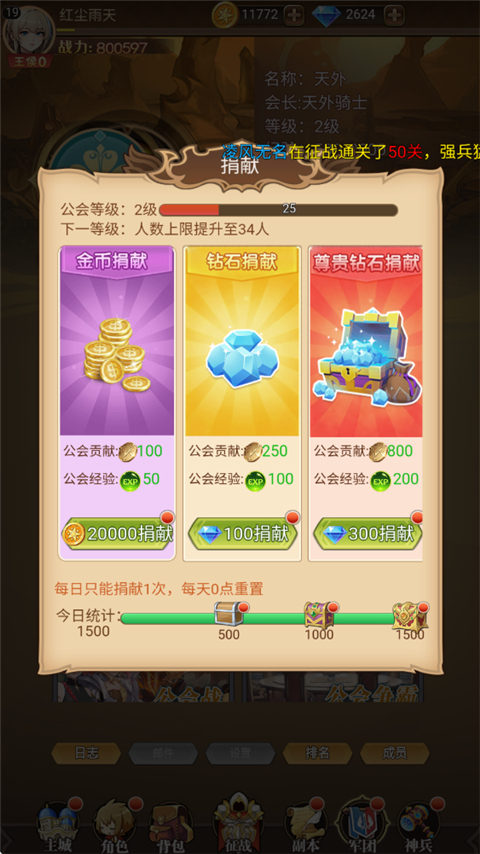 4、加入公会,消耗贡献学习公会科技也能让英雄获得极大的提升。