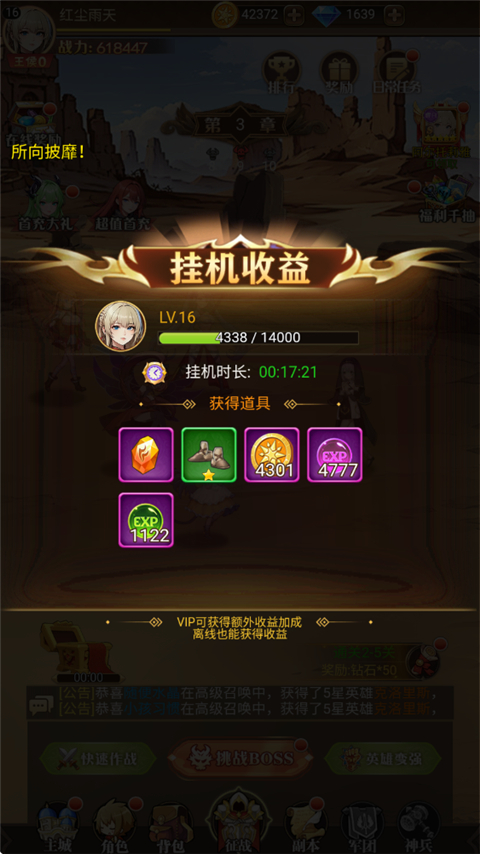 5、最重要的挂机收益可别忘记每天上线领取哦~