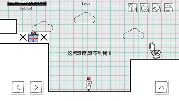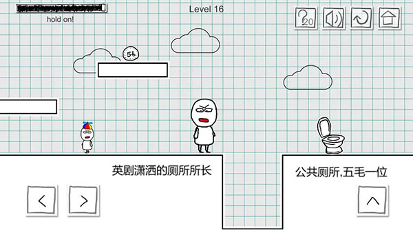 小贱出宫2官方版是一款充满挑战的益智恶搞游戏,你的目标很简单,就是帮助小贱同学上厕所,每一关的限定时间比较短,你需要在很短的时间内到达马桶的位置才可以过关。小贱出宫2游戏采用直观的双键操作,移动与跳跃,玩家可通过移动的来控制小贱的行动方向,而跳跃键则可以帮助你翻越障碍。除了紧张的通关挑战,游戏隐藏着宝箱等待探索,为冒险增添惊喜。无论是喜欢烧脑解谜,还是享受轻松恶搞风格的玩家,都能在简单又魔性的玩法中找到乐趣。欢迎来本站免费下载畅玩。