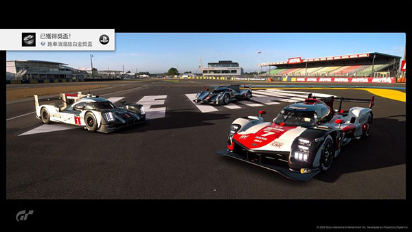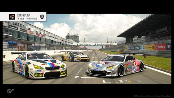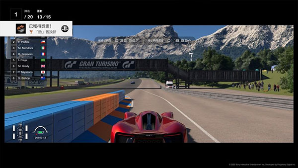 完成一场比赛且没有衝出赛道或撞车。(照著奖杯做即可)