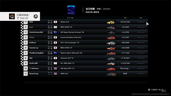 (这个只要每天都有跑或是刷钱即可获得,不用跟玩家对战,世界赛道那些有人名的NPC也算数)