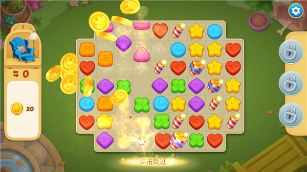 1、在三消改造益智游戏中装饰你的豪宅,三个同色抱枕排在一起就可以消掉;