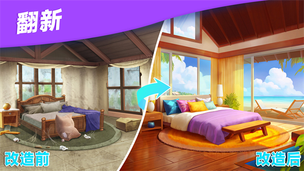 - 创新玩法:闯关完成任务,设计专属于你的豪宅和花园