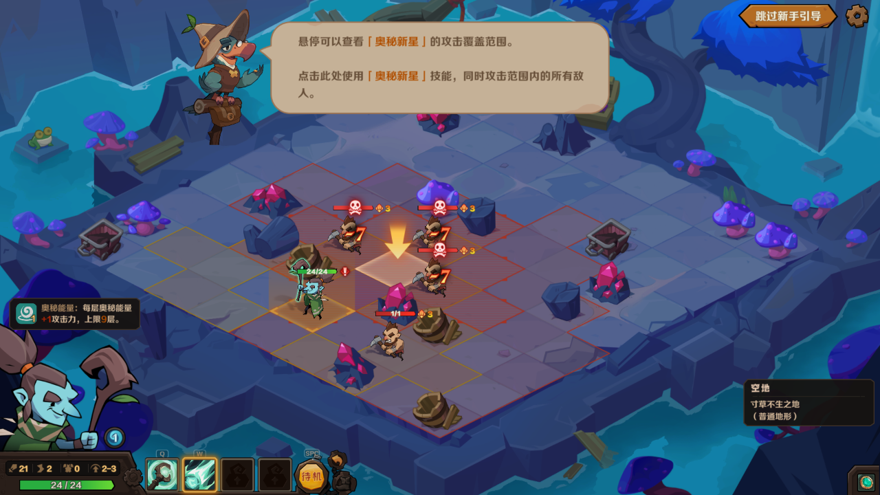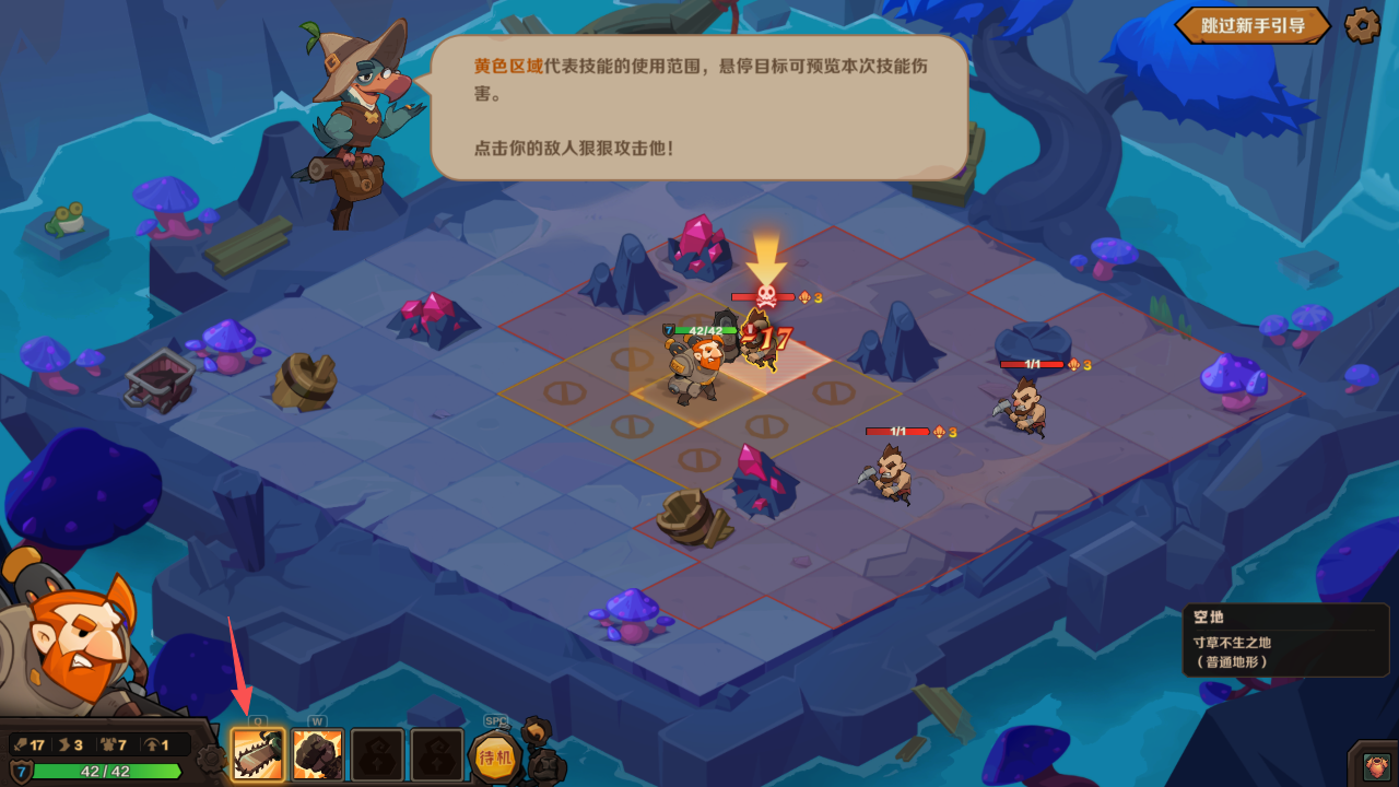 4、技能一会在滑步技能使用后重置,也就是还可以再攻击一次,一个回合最多可以击杀三个单位。