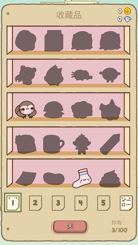 8、选择左下角【收藏架】选项,可看到已解锁和未解锁的收藏品,你需要多多抓取和完成任务就可以解锁所有收藏品了,以上就是爪男孩的玩法了。