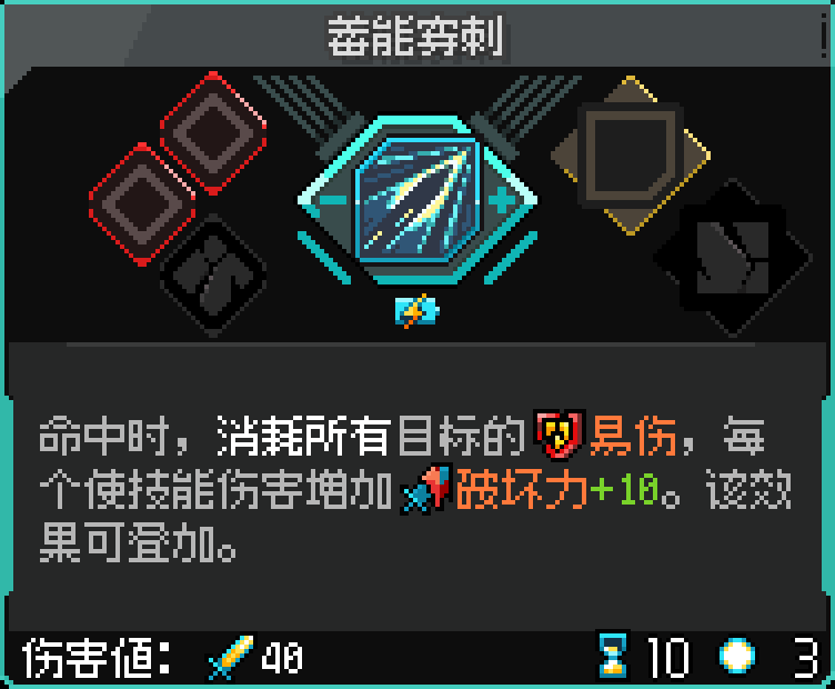 用【十字跃斩】短cd连打堆叠大量易伤,之后蓄能穿刺一次性叠加大量基础伤害,搭配易伤本身的伤害乘区和吃满各种蓄力组件的伤害乘区后轻松上万。
