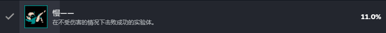 蓄力锤成就。需要有“蓄力时不会被击败”的模块。但游戏的虚血设计让玩家完成蓄力的瞬间会造成伤害从而回血,所以成就解锁不了。得先蓄力卖血空挥,让血量刚好停留在1滴,再蓄力受伤撑住攻击即可。
