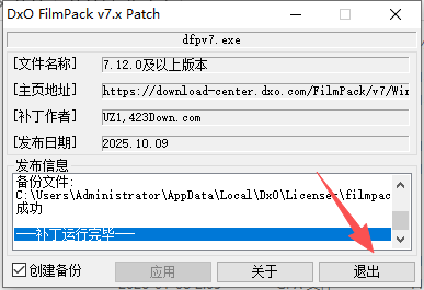 16、出现补丁运行完毕则代表激活成功,点击【退出】。