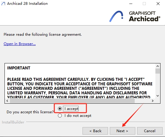 1、双击运行Archicad-28.0.0.exe程序文件。