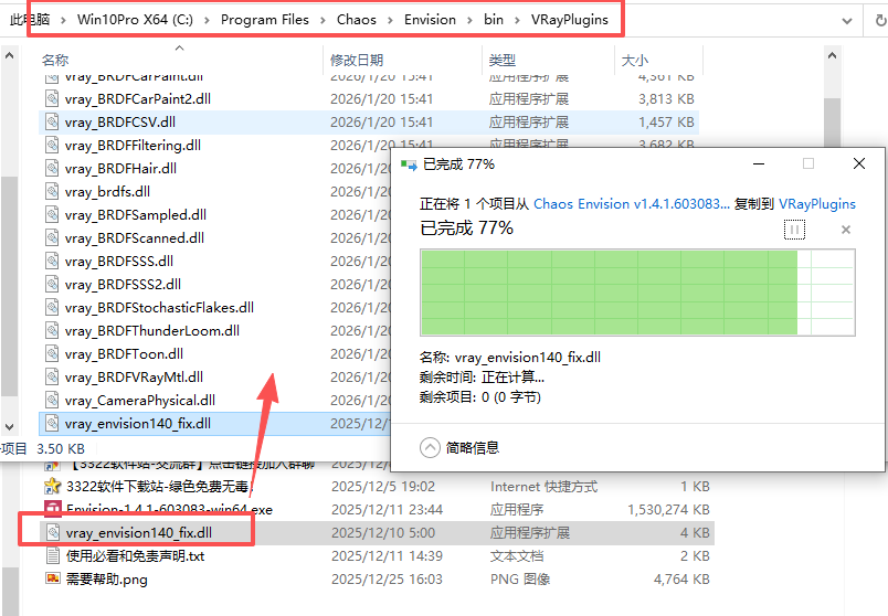 6、将刚才复制的vray_envision140_fix.dll到安装目录的如下位置,默认C:\Program Files\Chaos\Envision\bin\VRayPlugins;