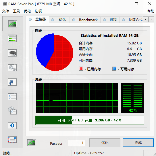 RAM Saver Pro是一款专业的内存优化工具,能够随时自动调整计算机内存,从而解决数据碎片占用运存的问题,确保您的计算机尽可能高效地运行。该软件还可以检测到电脑的各种数据,比如修复内存泄漏问题、显示内存剩余量、存性质测试、系统托盘监视器、完整的统计输出、储户等等功能。使用这些优化技巧帮助您最喜欢的应用程序和游戏运行得更快、更高效——即使在旧电脑上也是如此。如果您的电脑不如之前的流畅,变得卡顿,那么快来下载试试吧!