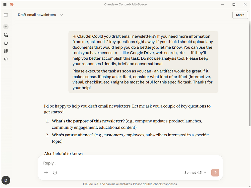 在任何应用程序中无需切换窗口或失去焦点即可调用Claude。