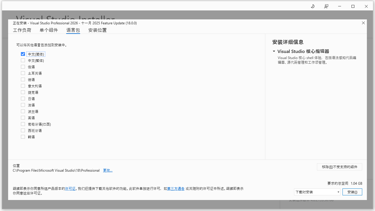 本站已经提供了visual studio professional 2026官方版软件包,解压出来安装。