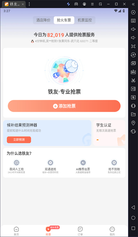 令人激爽的抢票体验,预约抢票、抢别人退票全搞掂