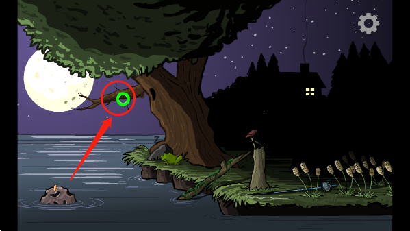 第一关:先点树枝,树枝掉下来,爬上去;点青蛙,青蛙死,点树洞,鸟飞,点鸟原来站的那木头,木头倒,点鱼竿,杆架过来,点水里石头,鱼来,点虫,虫爬杆,点竿几下,过。