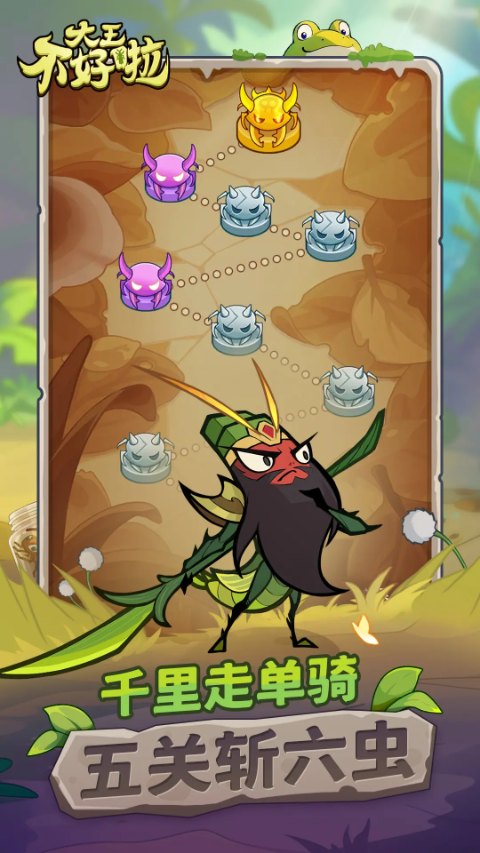 大王不好啦官方版是一款非常独特的三国卡牌放置手游。游戏将昆虫元素与三国武将巧妙结合,打造出一个个很搞笑的昆虫拟人化三国英雄形象。游戏以放置养成为核心玩法,玩家可以招募各种三国英雄,并通过装备、天赋、翼纹、神器等养成系统提升他们的实力。大王不好啦游戏全程自动战斗,支持多倍加速功能,让玩家轻松享受游戏过程。 除了主线闯关玩法外,大王不好啦游戏内还提供了多种副本挑战,如河岸冒险、地穴探险、过关斩虫等,进一步丰富了游戏的玩法和趣味性。感兴趣的小伙伴快来下载体验吧~