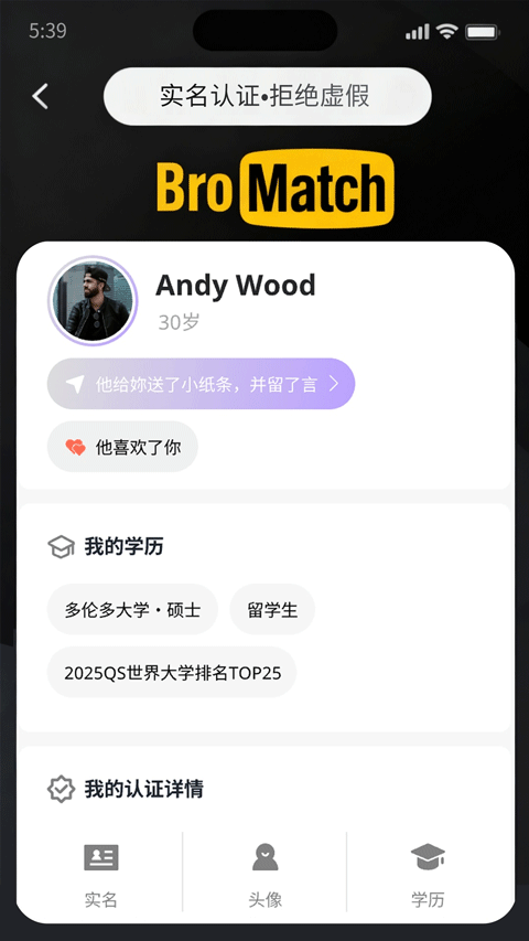 用户可提交学历信息进行认证,展示教育背景,便于匹配价值观和生活阶段相近的人。