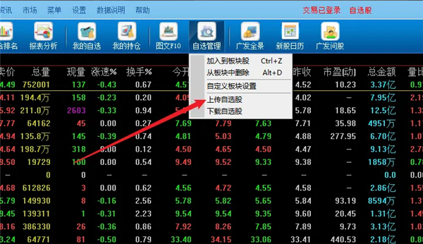 广发证券金融终端怎么上传自选