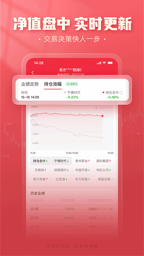 新手可领取体验金模拟交易,结合APP内的基金知识课程与实时净值跟踪功能,边实践边学习;老基民则可通过业绩走势图、持仓变动分析等工具,深度复盘投资策略。